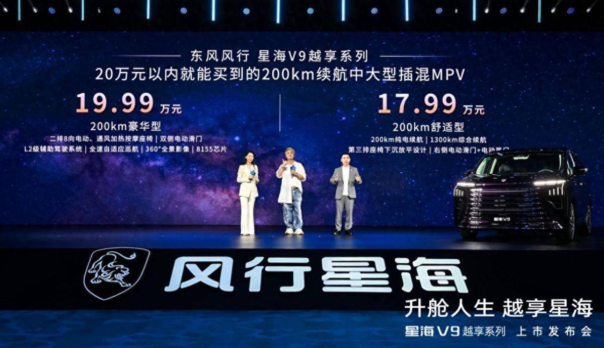 20万内新能源豪华MPV时代来了!近日,东风风行星海V9越享系列正式上市,作为20万内唯一的中大型插混MPV,星海V9越享系列以其卓越的产品力和极具竞争力的价格,完美诠释了何为"越级享受"。新车提供舒适型和豪华型两个版本,官方指导价分别为17.99万元和19.99万元,在享受国补和央补后,实际入手价仅需14.99万元和16.99万元起。个价格不仅打破了中大型新能源MPV的价格壁垒,更重新定义了豪华MPV的价值标准。